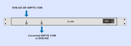 The CL-350 is a robust MPEG transport stream converter that is compliant with both ATSC and DVB standards. It converts MPEG TS transport streams between SMPTE 31OM & DVB-ASI. Any of these formats at the input are converted into both two formats (ASI, SMPTE 310M), available simultaneously, at the output. All outputs are active simultaneously.