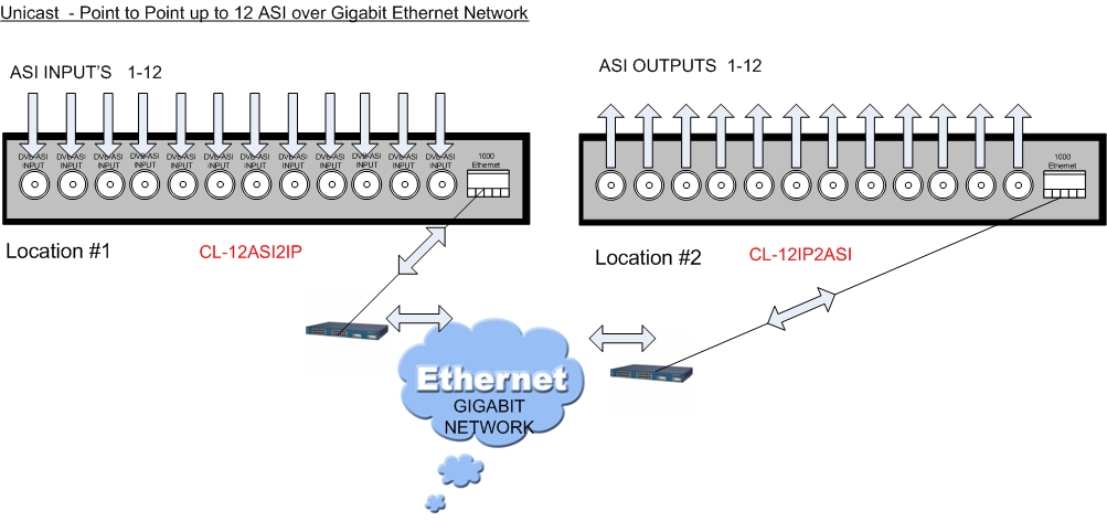 Together with CL-12ASI2IP create link over the Gigabit Ethernet network for transporting 12 independent DVB-ASI transport streams from place to place.